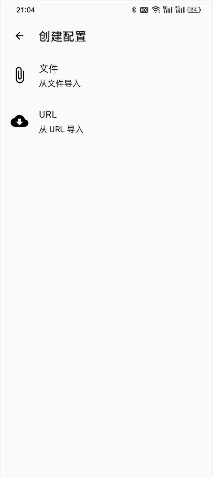 打开 Clash for Android,首次进入主界面后点击右上角 ➕ 添加配置。