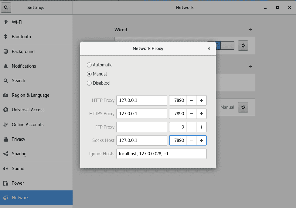 由于 Clash for Windows 的系统代理功能只在 Windows 和 macOS 下生效,所以在 Linux 下需要手动设置系统代理。