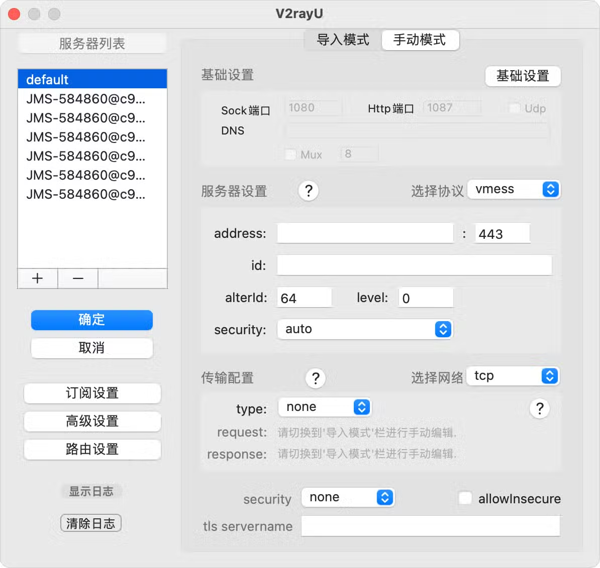 根据V2Ray节点添加相关服务器信息,即可配置V2Ray服务器。