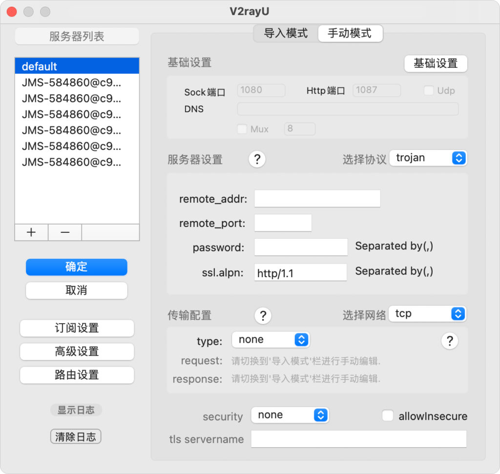 根据Trojan节点添加相关服务器信息,即可配置Trojan服务器。