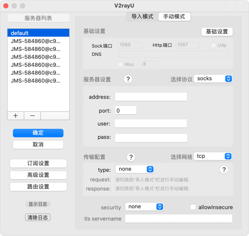 节点即软件中的服务器,在使用之前,首先需要添加一个 V2rayU节点 即服务端才能使用代理上网功能,更多节点可参考本站 Clash节点 | 获取Clash订阅节点